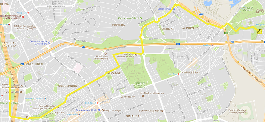 Ruta de nivel Medio con algo de intensidad. Comenzamos en Alameda de Osuna, junto al parque de "El