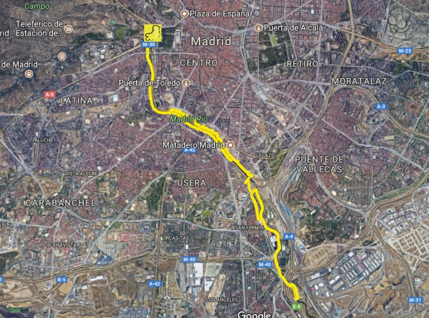 Ruta que nos llevara a recorrer el río manzanares desde Príncipe pío hasta la caja mágica, disfrutando de dos partes muy distintas, una mas urbana y otra en la que podremos disfrutar del río en un estado mas natural, recorriendo los parques de Madrid Río y parque Lineal de Manzanares.